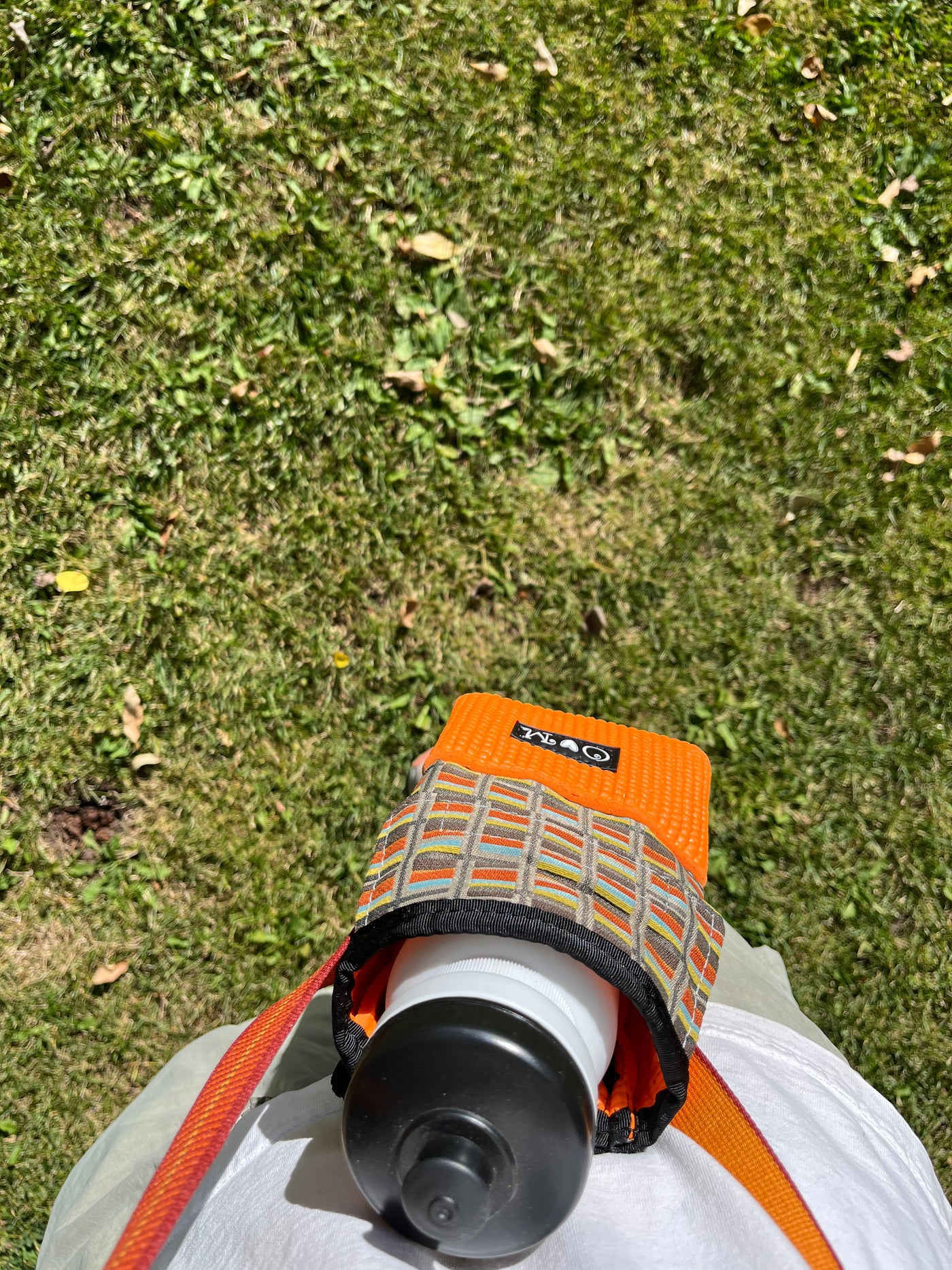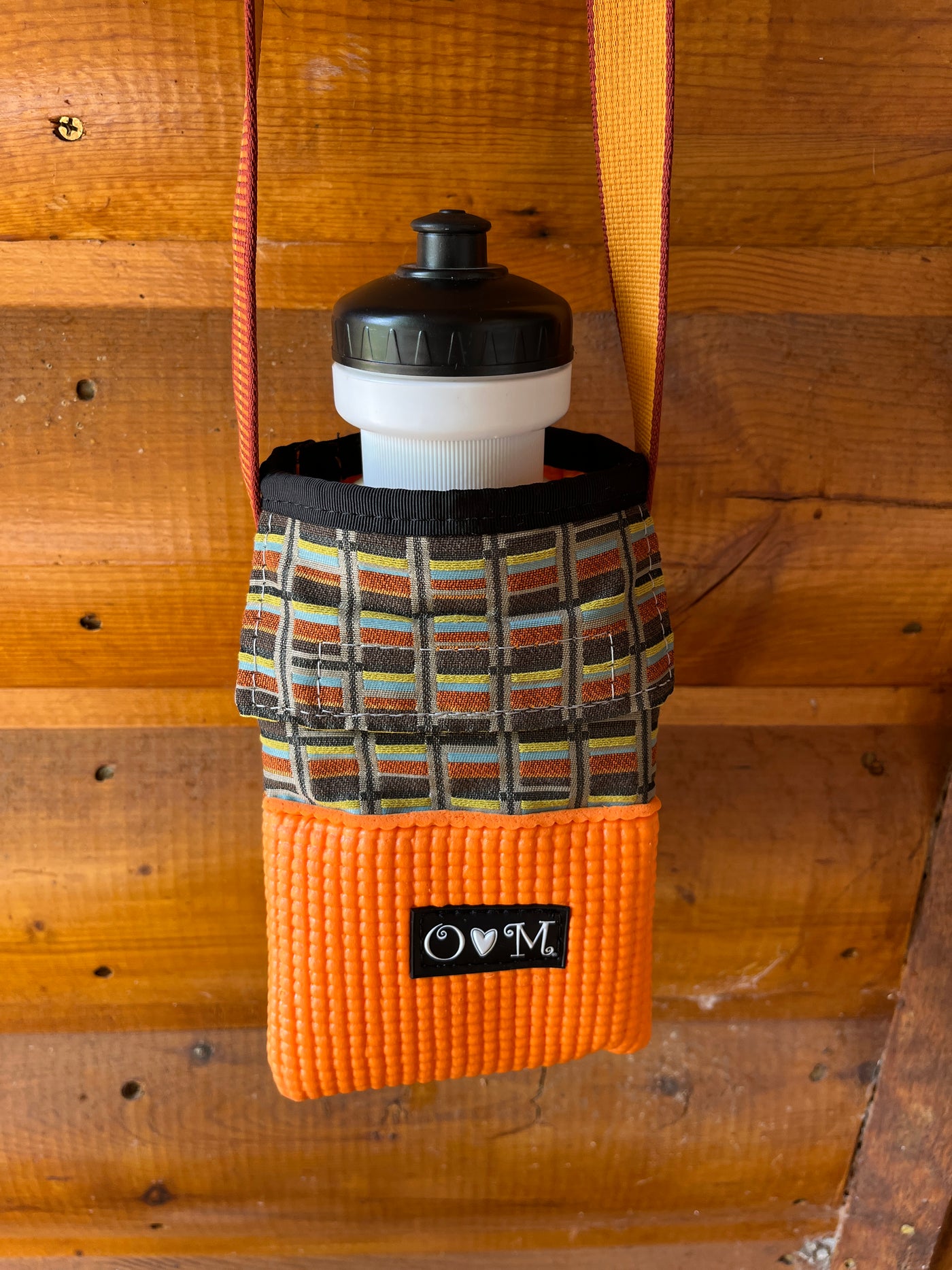 Ajax Orange Water Bottle Holder Purse- Geometric Home dec fabric