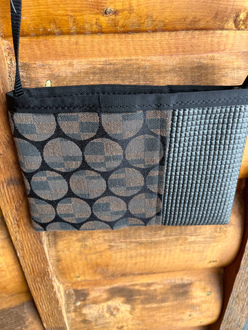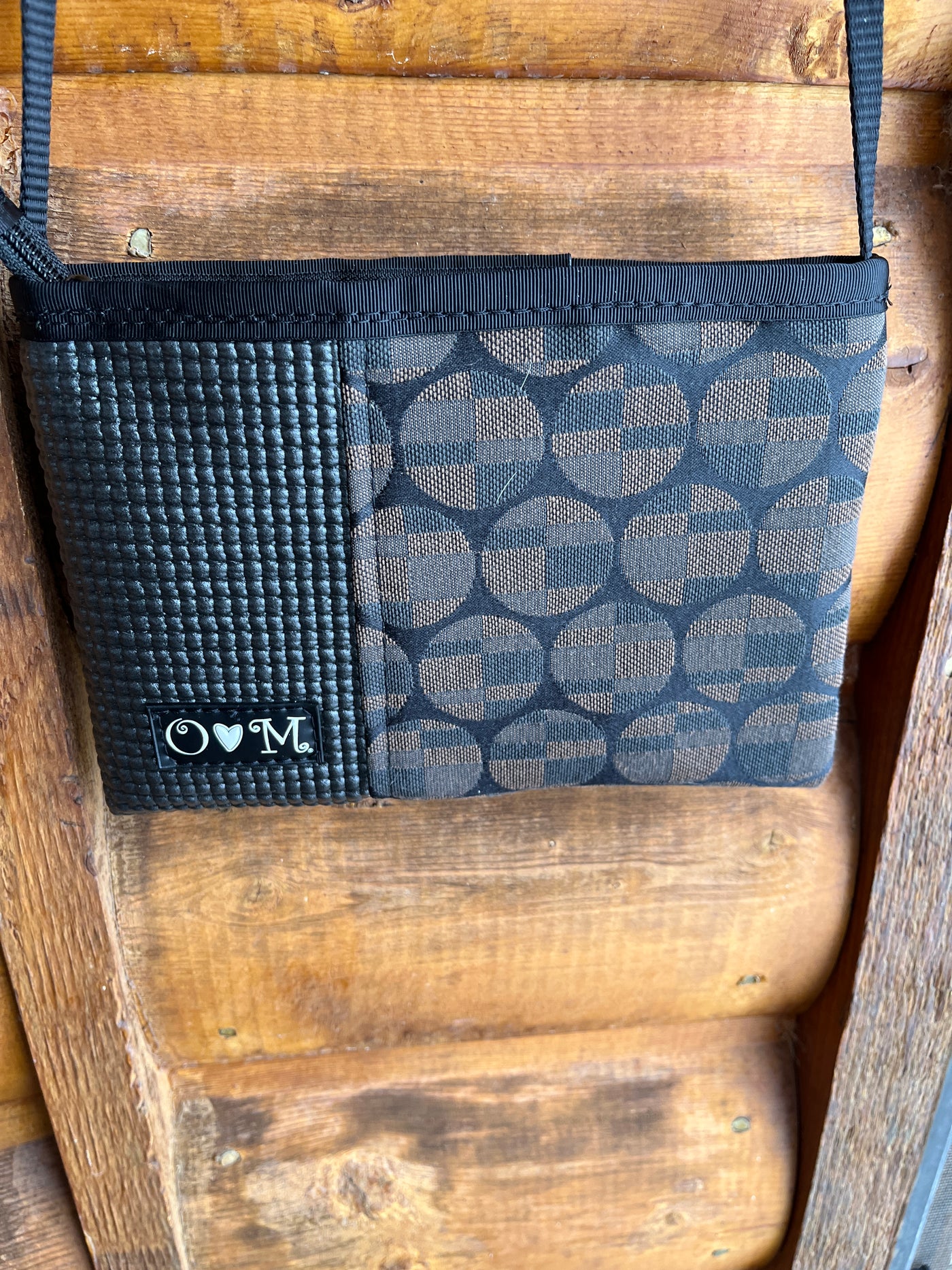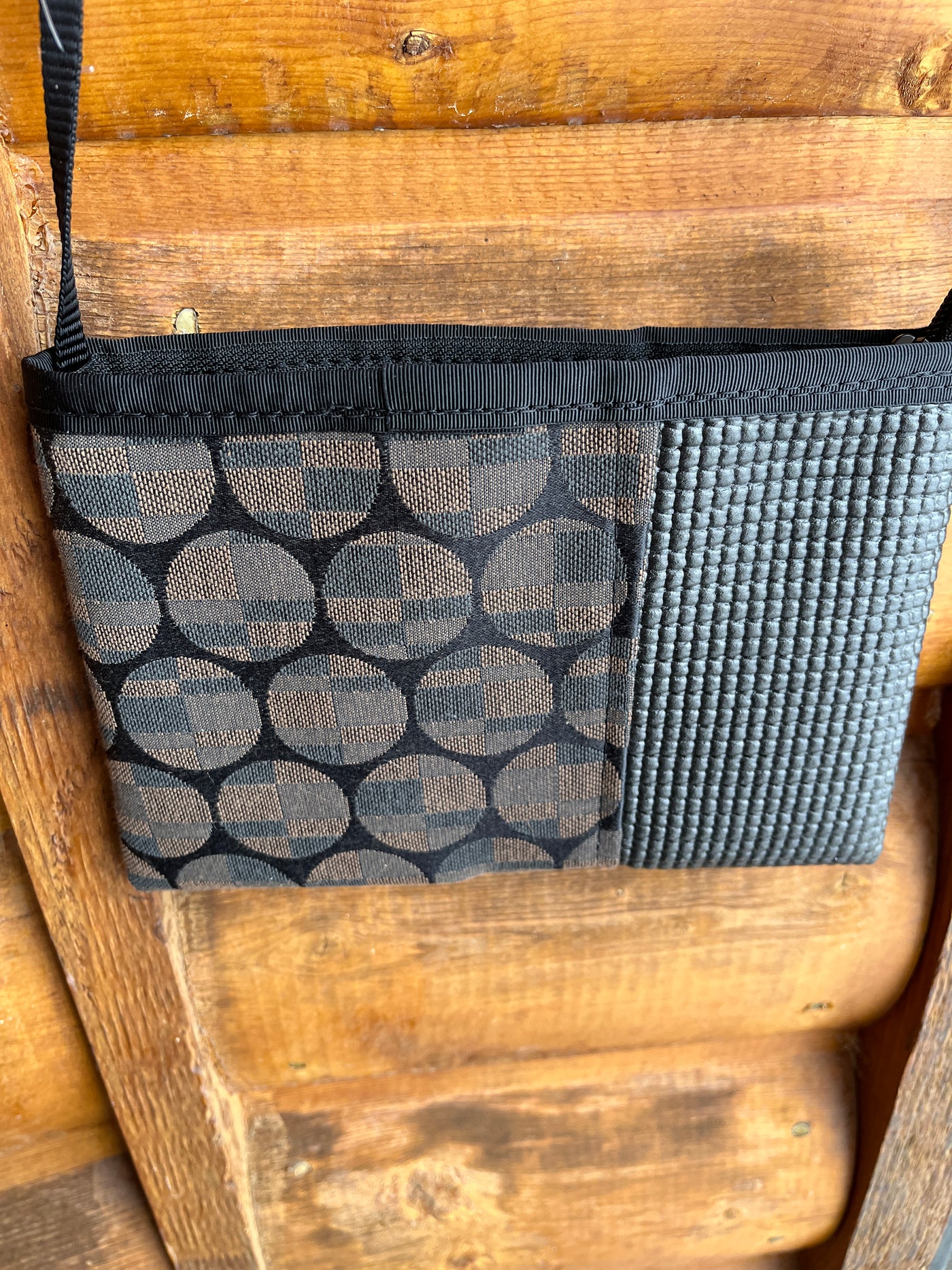 Dive into sustainable style with the GoGo a fun new style with a beautiful home decor print fabric. A compact and colorful bag crafted from upcycled black yoga mat. It's 8"x6" in size makes it perfect for everyday use or travel.