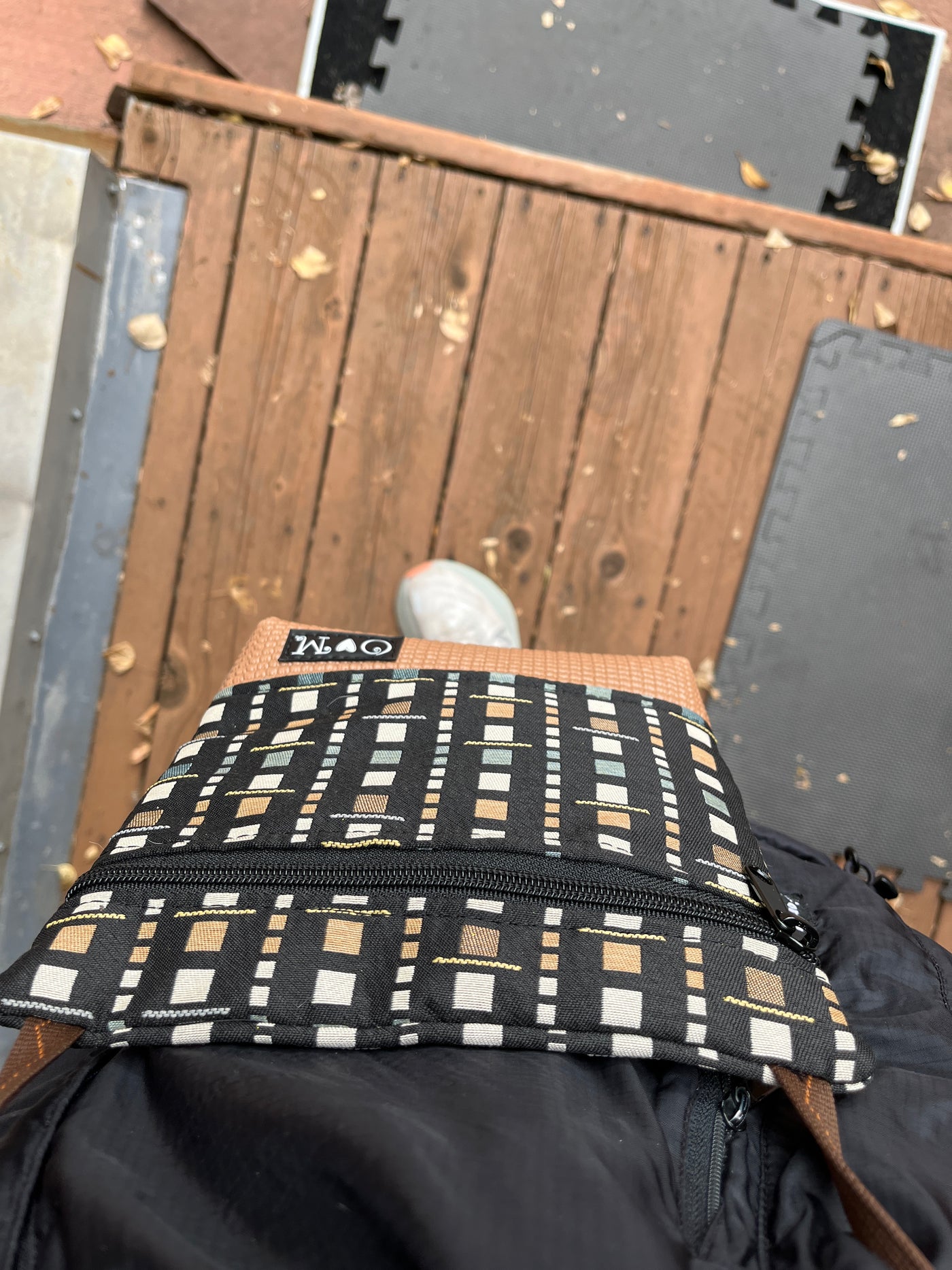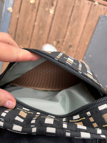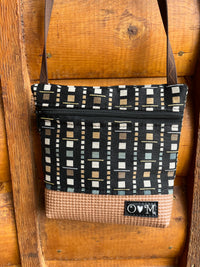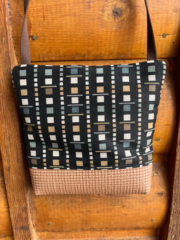 Lola tan adjustable strap purse- Geometric Home Decor Fabric