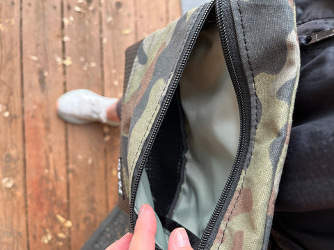 This handcrafted Black Camo Lola bag exemplifies Colorado-made quality and thoughtful design. Constructed from durable yoga mat material paired with USA-sourced fabrics, it delivers both substance and style.