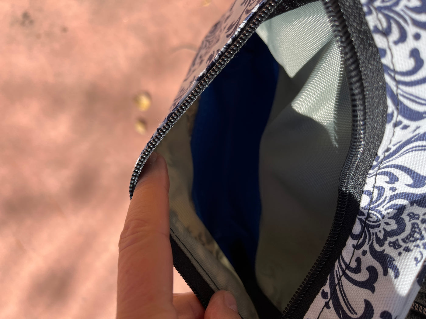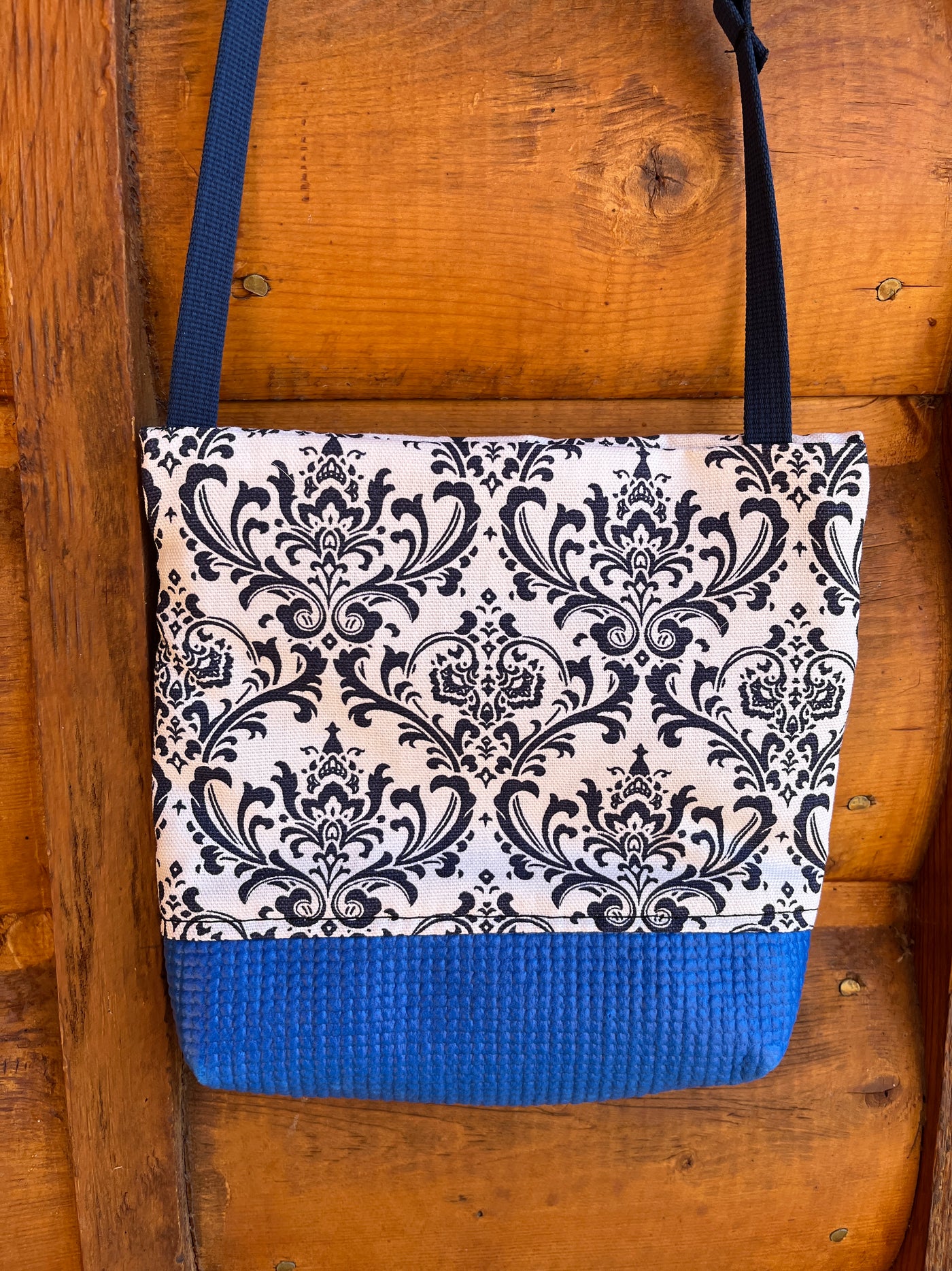 This handcrafted Colorado gem features a vibrant damask print and boasts a comfy adjustable cross-body strap that keeps your hands blissfully free.
