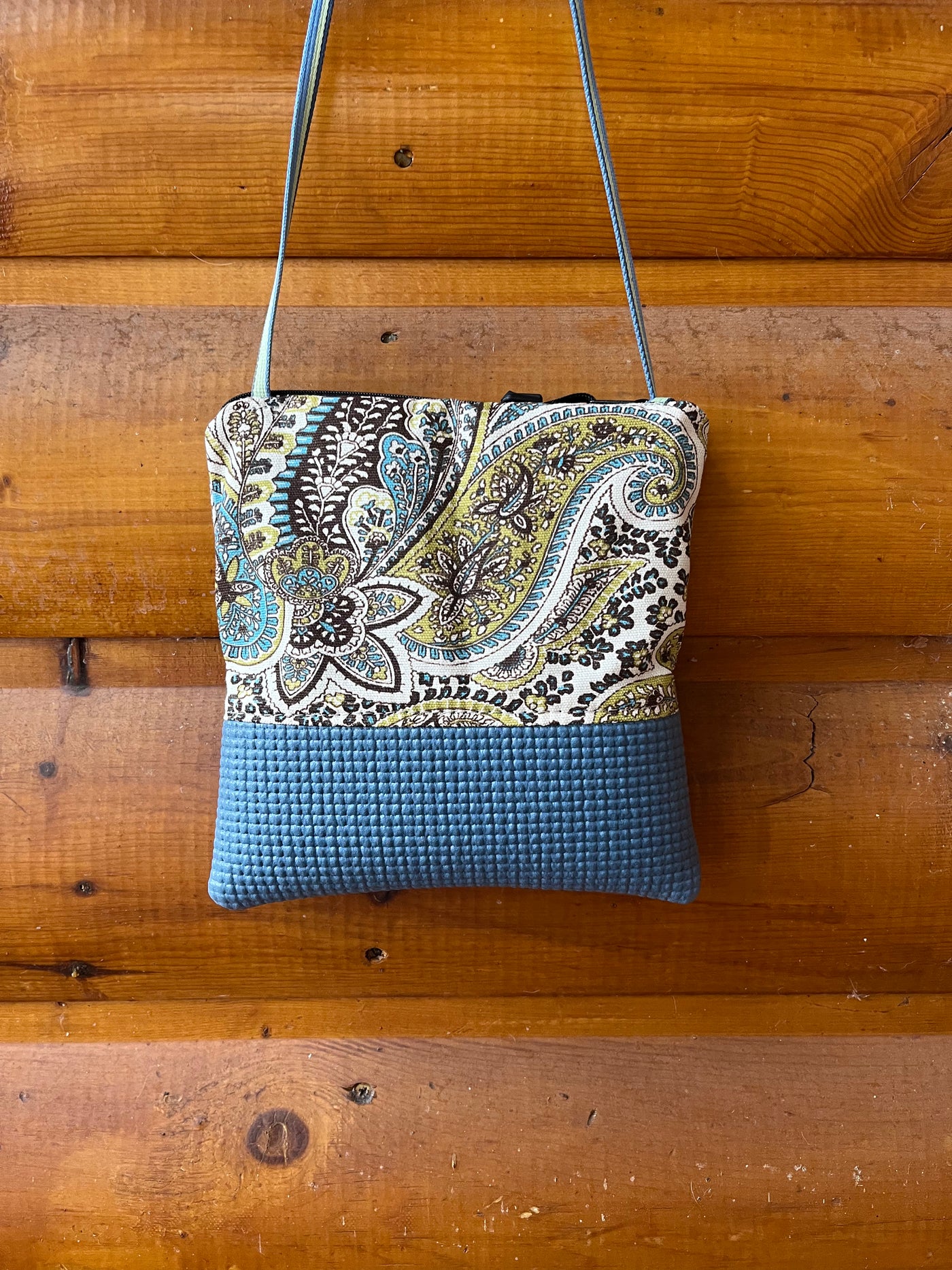 Stella Slate Blue Cross Body Purse-Paisley Print fabric Sale